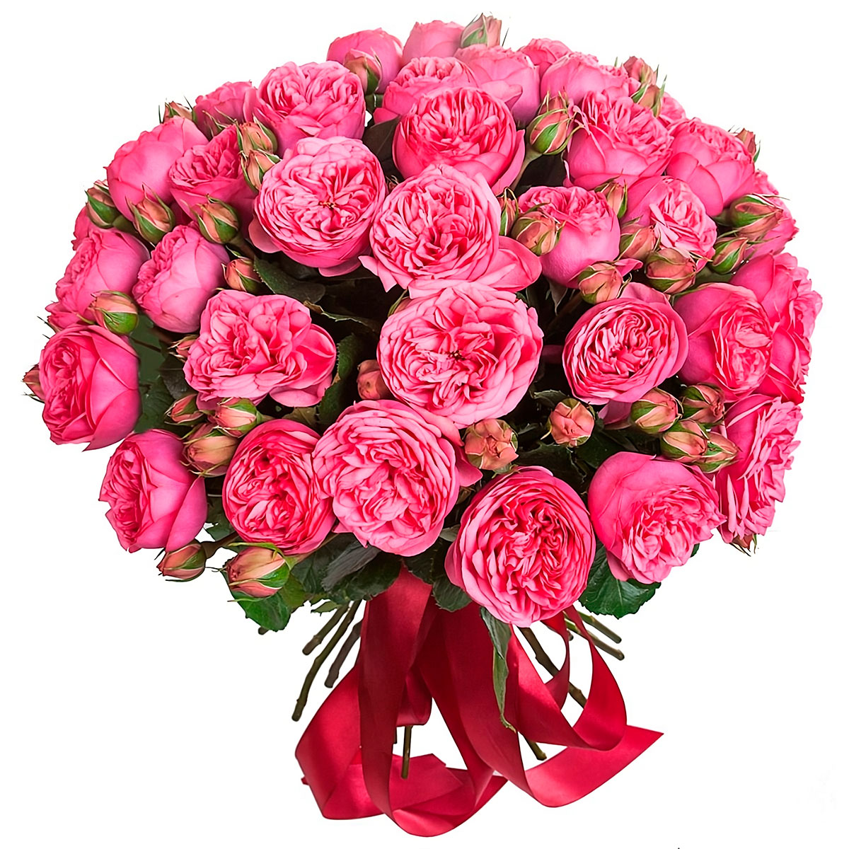 Роза пионовидная розовая. Упаковка (лента, пленка, крафт, сетка, пленка матовая)