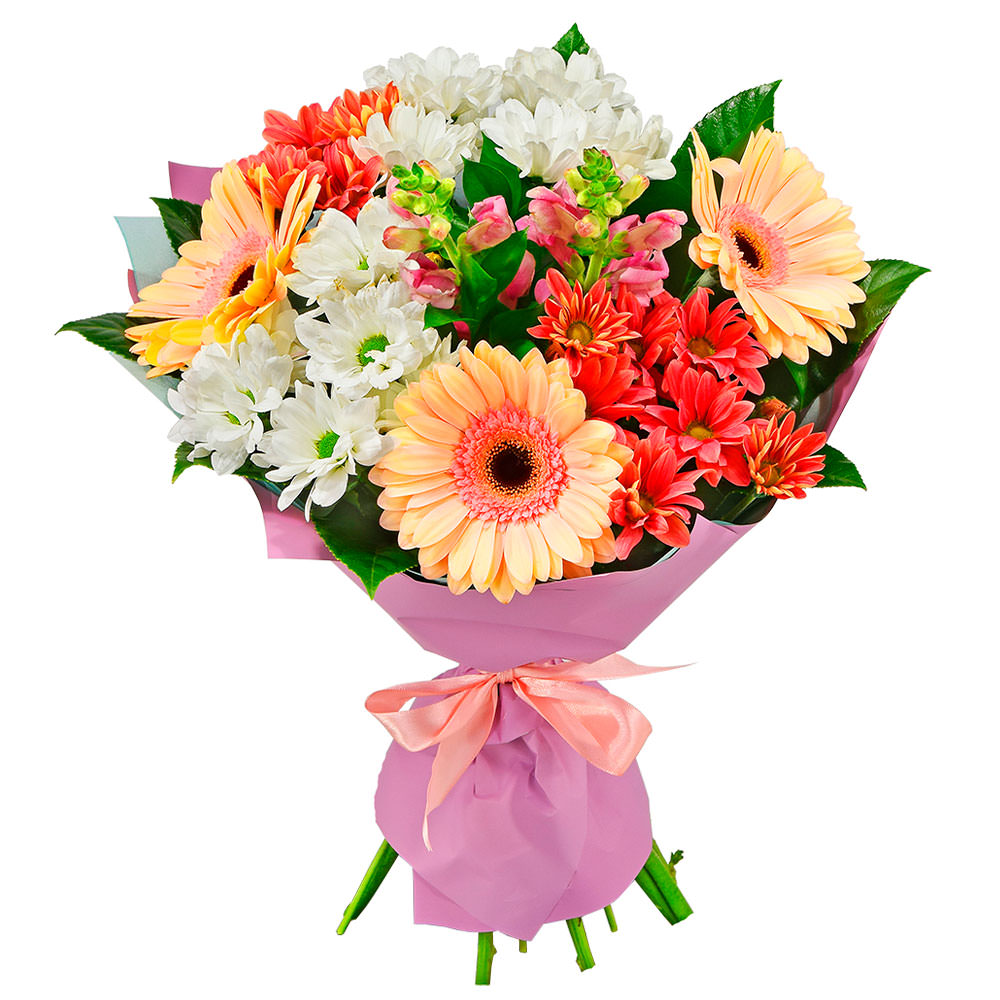 | Состав | Герберы, Львиный зев, Хризантемы |